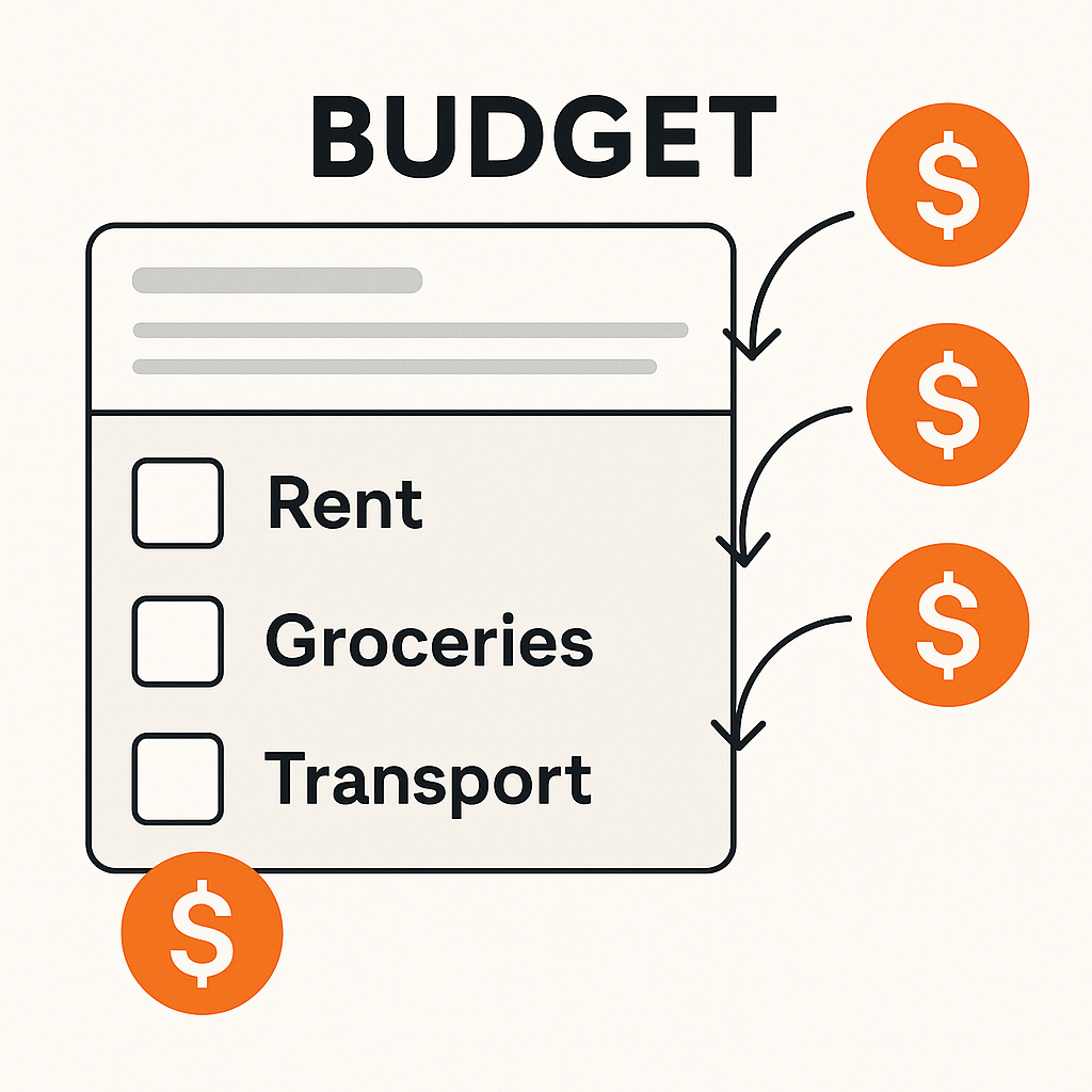 You start by listing your expected income and your expense categories (for example: rent, groceries, transport, and fun). Then you assign a fixed amount of money to each category ahead of time.